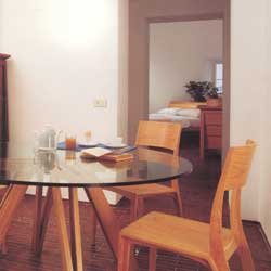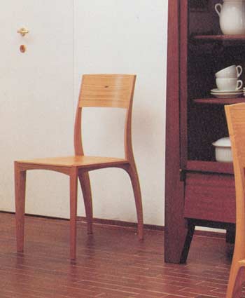 Side chair developed in birch and cherry. Solid bentwood supports and molded plywood seat and back.